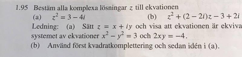 Löser vi detta får vi reda på vad x och y är och kan därmed skriva alla lösningar på formen z=x+yi.
