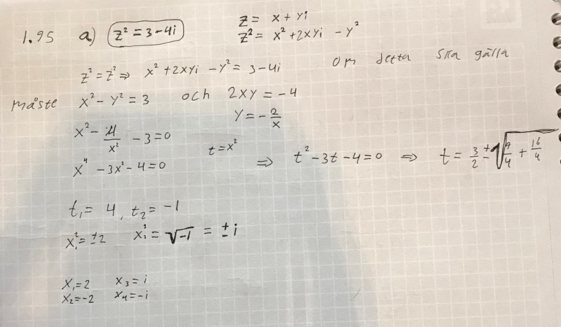 Jaha jaa jag förstår. Självklart. Jag har ju löst z^2 genom att lösa modellen av z^2 och jag behöver bara stoppa in värdena i z=x+yi.