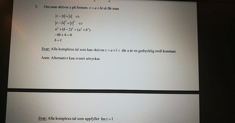 Bedinsis skrev:Eftersom det är skrivet för hand så gissar jag att personen i fråga råkat skriva fel. Om man på näst sista raden ersätter alla b med b*i så ser uträkningen mer rimlig ut.