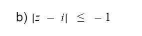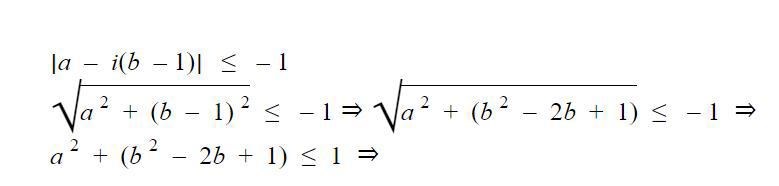 Rimligtvis verkar det ha smugit in ett minustecken, ekvationen har inga lösningar, absolutbeloppsfunktionen är alltid icke-negativ. Om det istället ska stå så beskriver detta en cirkel med medelpunkt i och radie i det komplexa talplanet, där randen även ingår.