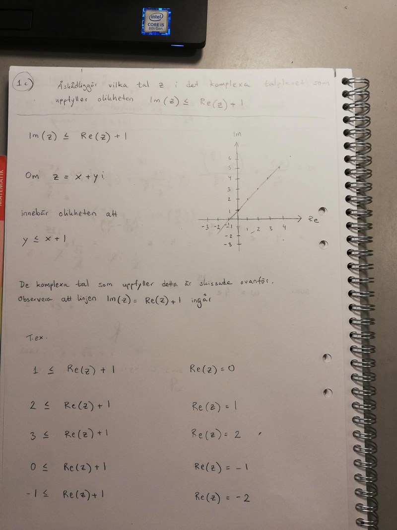 Åskådliggör vilka tal z i det komplexa tal planet som uppfyller olikheten Im(z) < och lika med Re(z) +1"
