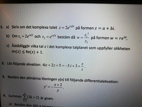 Smaragdalena skrev:Åskådliggör vilka tal z i det komplexa tal planet som uppfyller olikheten Im(z) < och lika med Re(z) +1"
