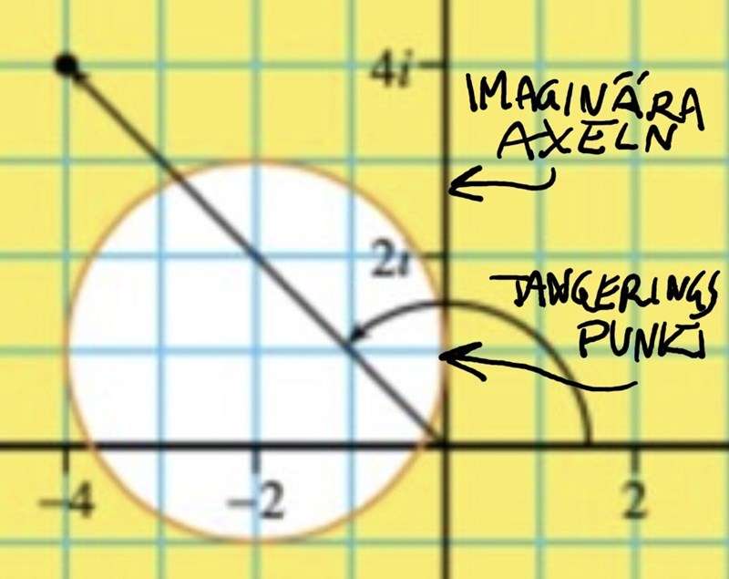 Tomten skrev:Som uppgiften är formulerad får man godta en grafisk avläsning. Du har cirkelns centrum i z=-2+i och cirkeln tangerar imaginära axeln i w= i. Radien kan då avläsas till abs(z-w)= abs(-2+i-i)=2