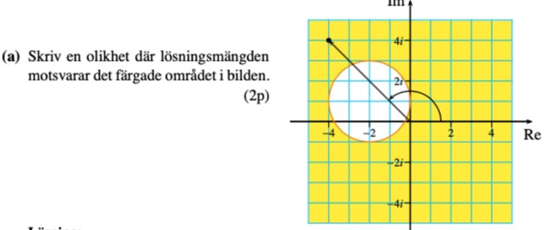 Yngve skrev:mattegeni1 skrev:jag blir mest förvirrad av att jag inte vet om jag ska svara i komplexa tal, absolutbelopp eller cirkelns ekvation? det är ju 3 olika saker i 1 uppgift