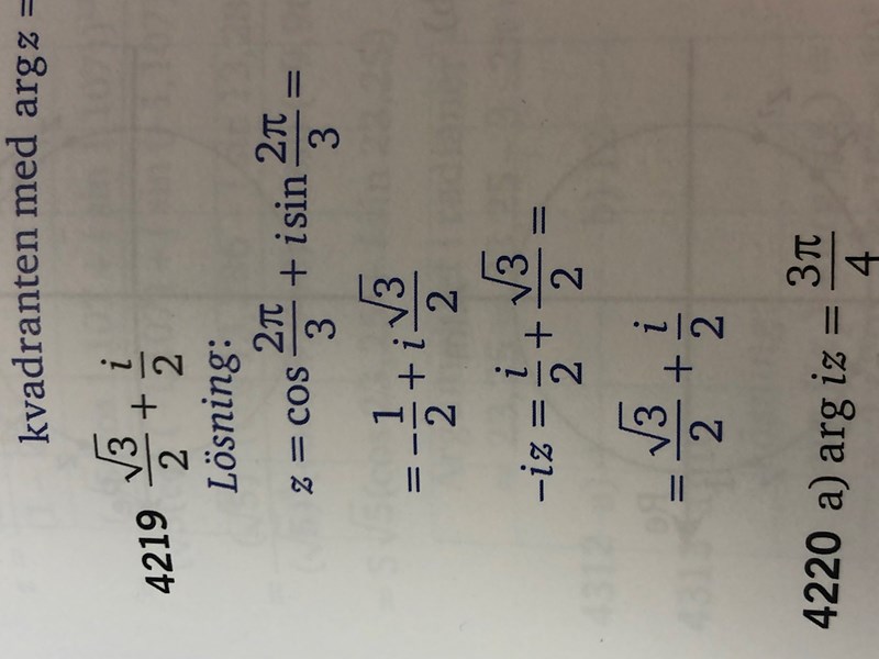 ”Ange talet -iz på formen a+bi, om |z|=1 och argz=2pi/3”