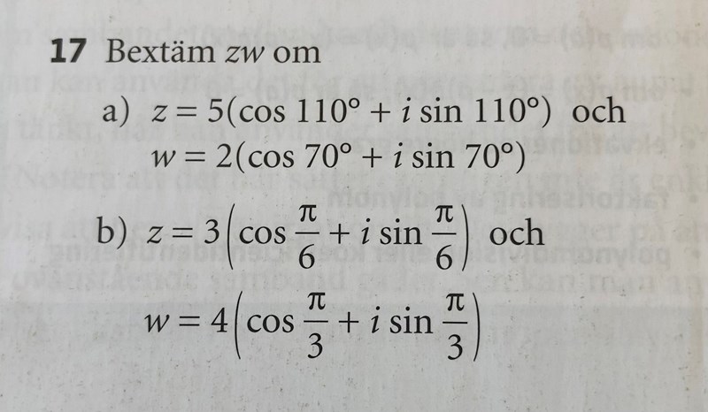 Yngve skrev:Dividera beloppen och subtrahera argumenten.