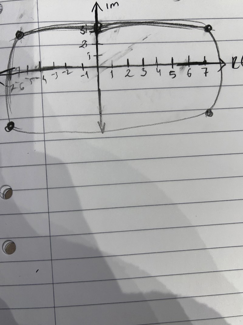 Var ligger z1? Om du utgår från denna punkt och ritar en vektor som har längden 7, men ej någon bestämd riktning, vilken geometrisk figur får du då?