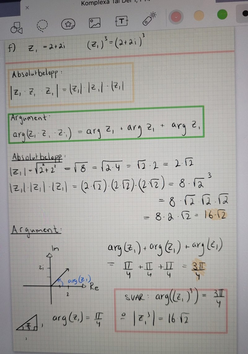 Är det meningen att man ska skriva om sambanden för absolutbelopp och argument på detta sätt? Jag fick rätt svar i alla fall men vet inte om tillvägagångssättet är rätt.