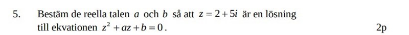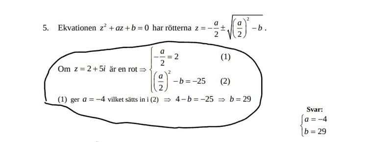 Eftersom vi har en rot, så kan vi ställa upp ett ekvationssystem och lösa för de okända koefficienterna och .