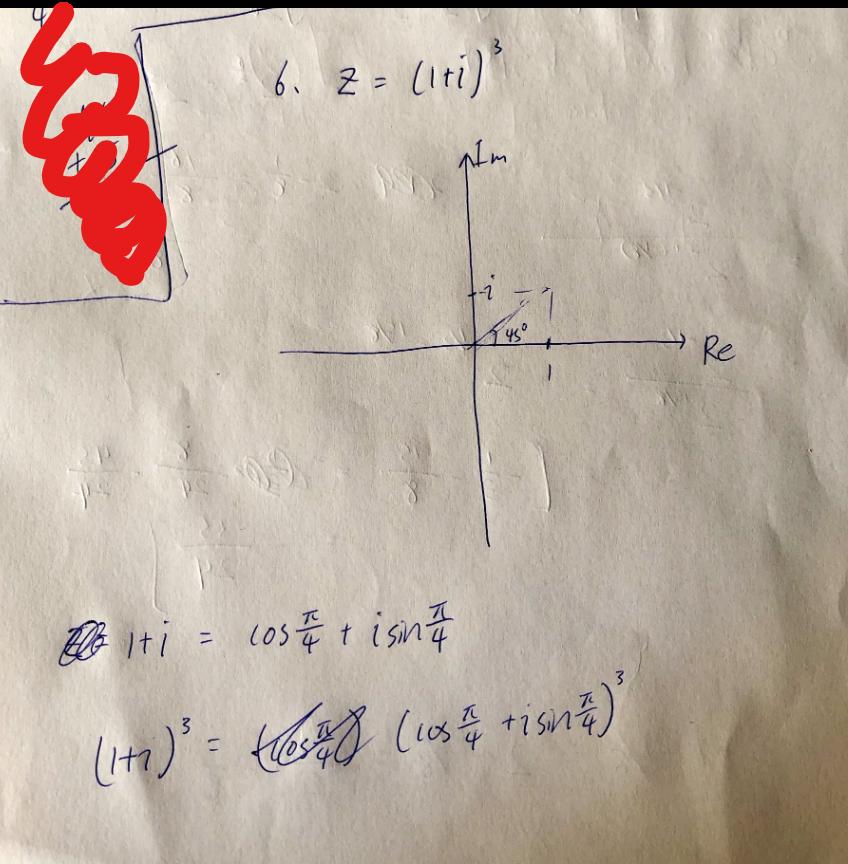 Tomten skrev:Det är förstås tycke och smak vad man upplever som enklare, men Marcus har ju redan börjat med polärform. Det är bara absolutbeloppet som fattas. Upphöjningen till 3 ger därefter omedelbart argumentet 3pi/4 med deMoivre .