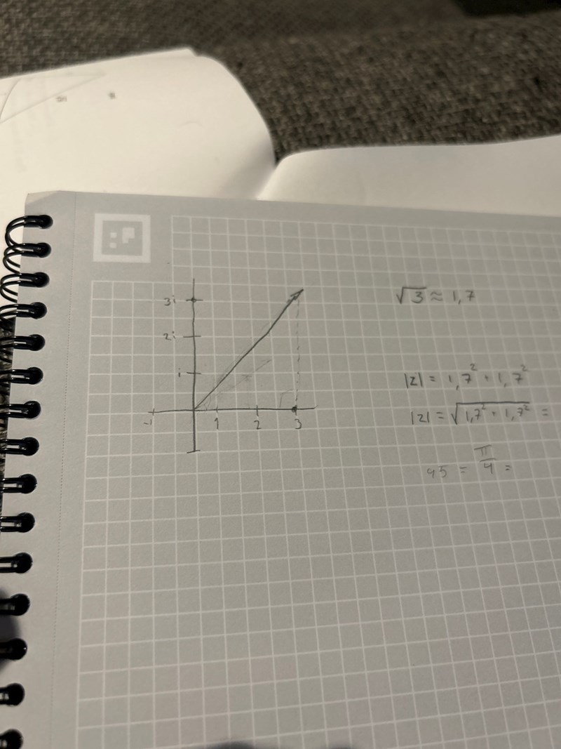 Det komplexa talet +i kan skrivas på formen (cos+ i sin) . Ange vinkeln i radianer.