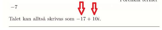 Men! Om man kikar lite, så kan man se att man får -17+10i om man petar in två ettor i det svar jag anser vara korrekt.