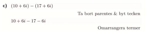 Jag kan ju skriva -7 som -7+0i om jag vill, men vad hjälper det. Det blir inte -17+10i i alla fall.