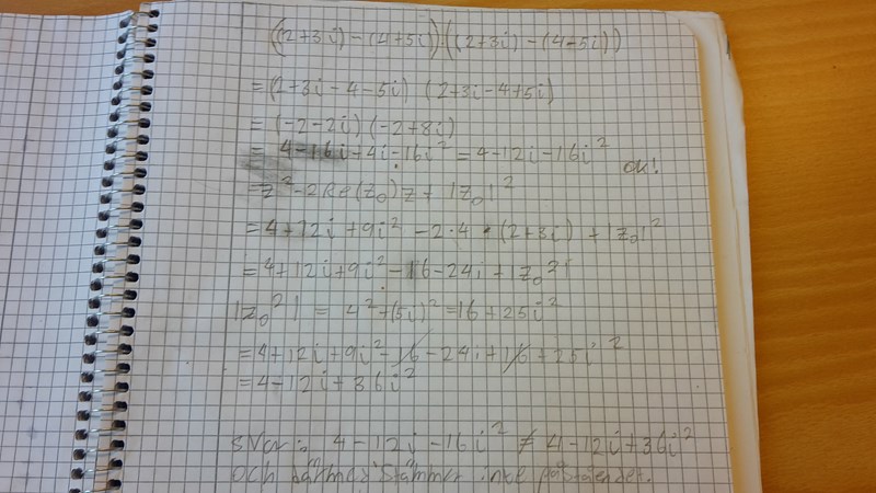 Du går för fort fram. Själva produkten är 13. Vad är imaginärdelen av 13?