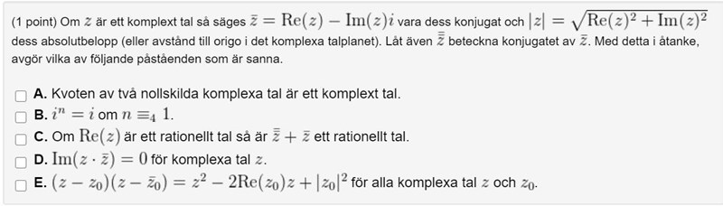 För del D: Ett godtyckligt komplext tal z kan skrivas där .