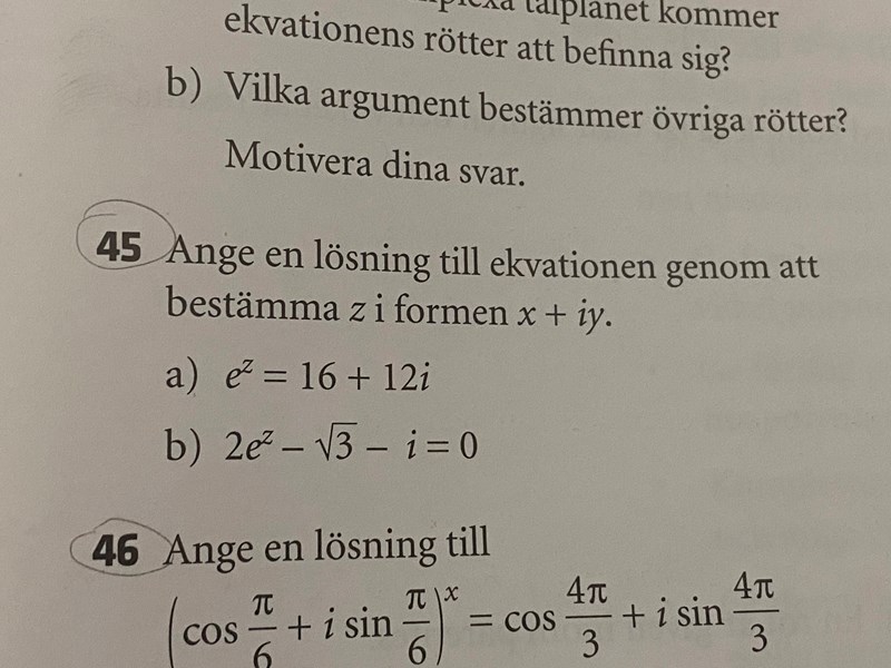 Komplexa tal, hitta lösningar