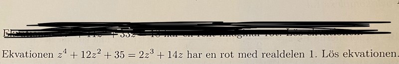 Båda b löser den första ekv. varför 1±2i är en lösning till ekv.