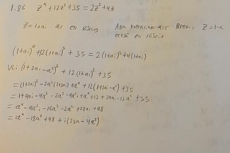 sätter in en lösning z = 1 +ai, sedan utvecklar jag VL och HL, därefter är tanken att lösa ut a