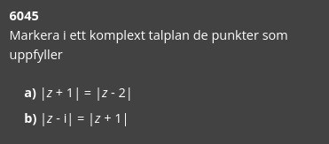 Vilka punkter har lika långt till -1 som till 2? Det självklara svaret är den punkt som ligger mitt emellan, z=1/2, men det finns fler!
