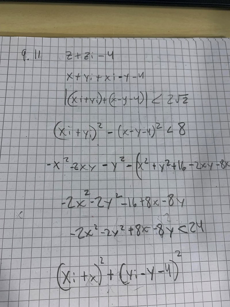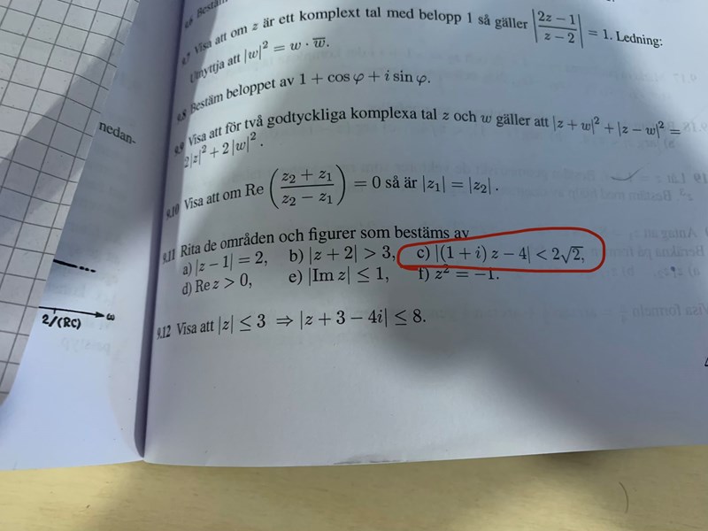 I det första steget bryter jag ut en faktor (1+i) från (1+i)z - 4. Lite tydligare: