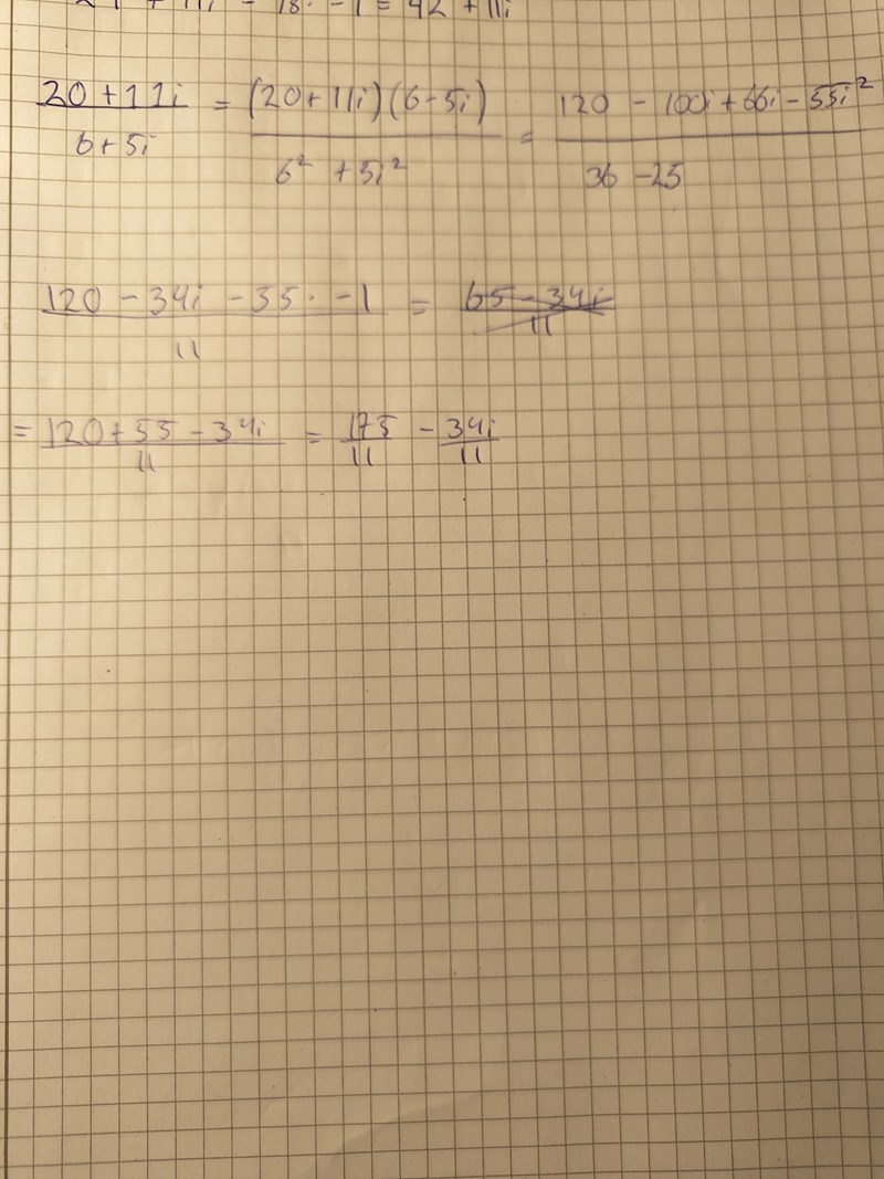 (6 + 5i)(6 – 5i) = 36 – 25i2 = ...