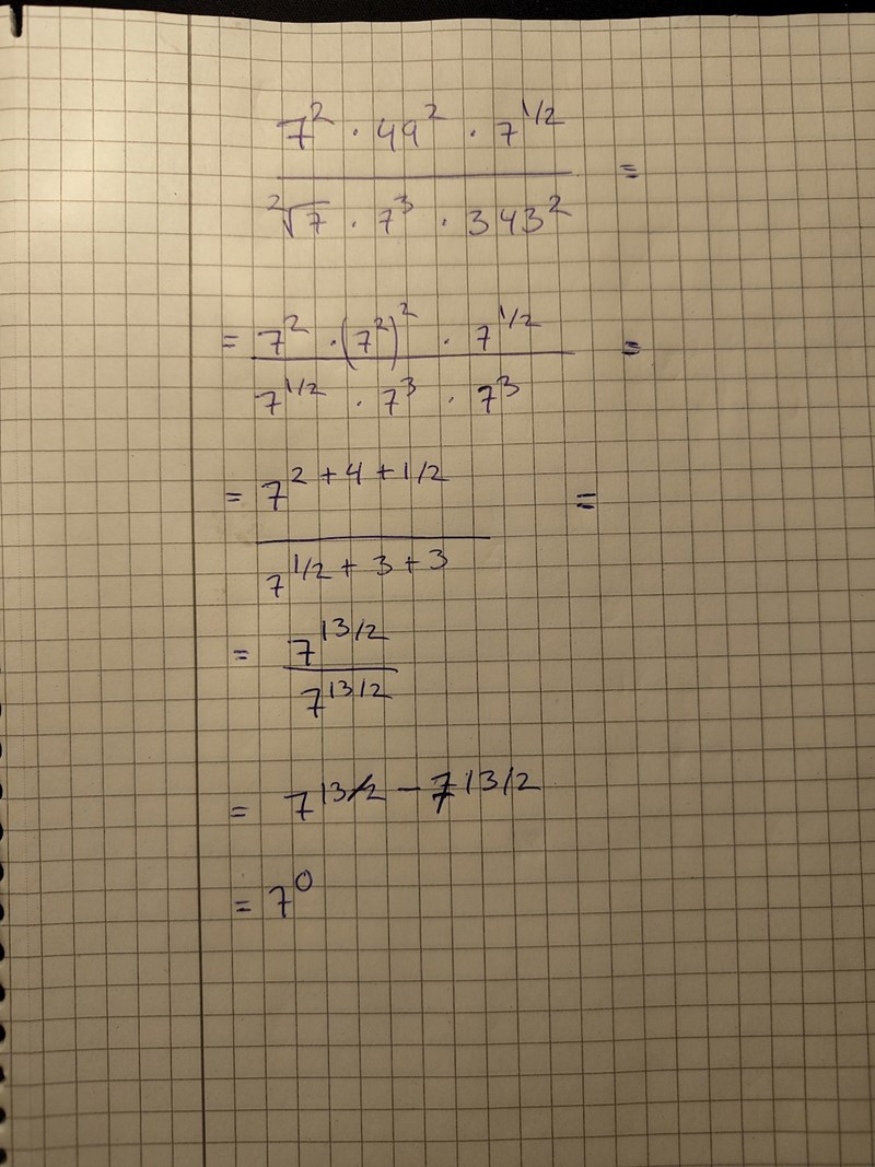 På det andra talet tänker du rätt, men missar att 3432 = (73)2 = 73•2 = 76
