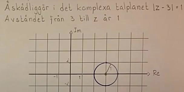 Alla punkter som ligger på cirkeln som är ritat i bilden ovan har avståndet 1 till z = 3.