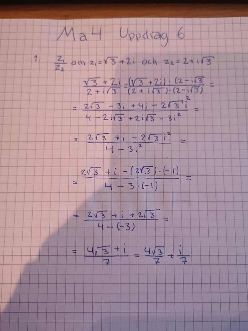 komplexa tal - svara på formen a+bi