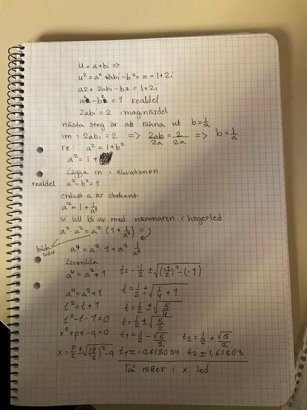 Jag har löst realdelen med pq formeln och fått rötter på två x led men jag vet inte hur jag ska lösa iy