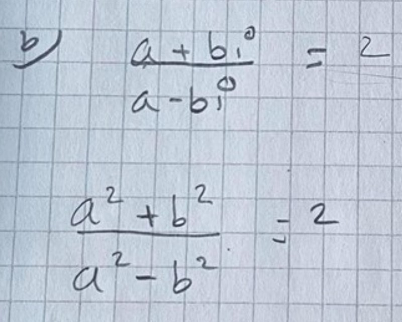 Så får jag till det, är det korrekt? sedan kan man ju se att a^2-b^2 inte är samma sak som2a^2+ b^2 så borde det inte finnas en sådan likhet, tänker jag rätt?