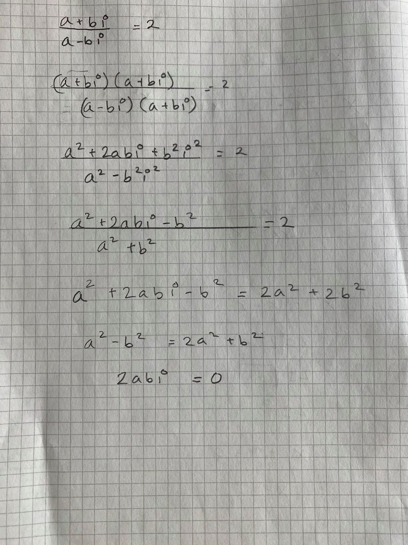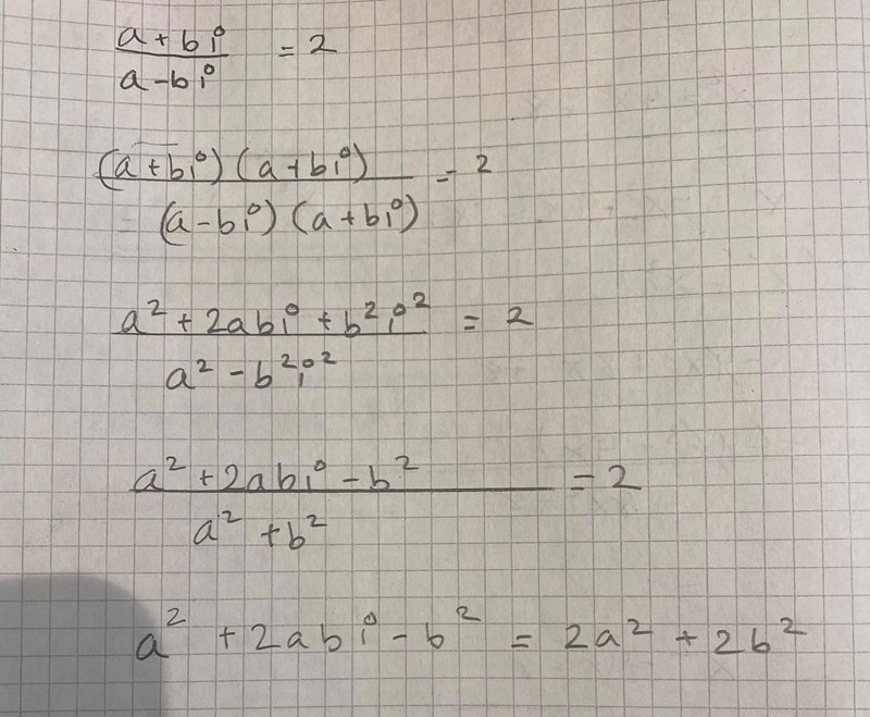 Men att inte är samma sak som för alla $$a€€ och $$b$$ innebär inte i sig att det inte finns något exempel på ett komplext tal som uppfyller villkoret.