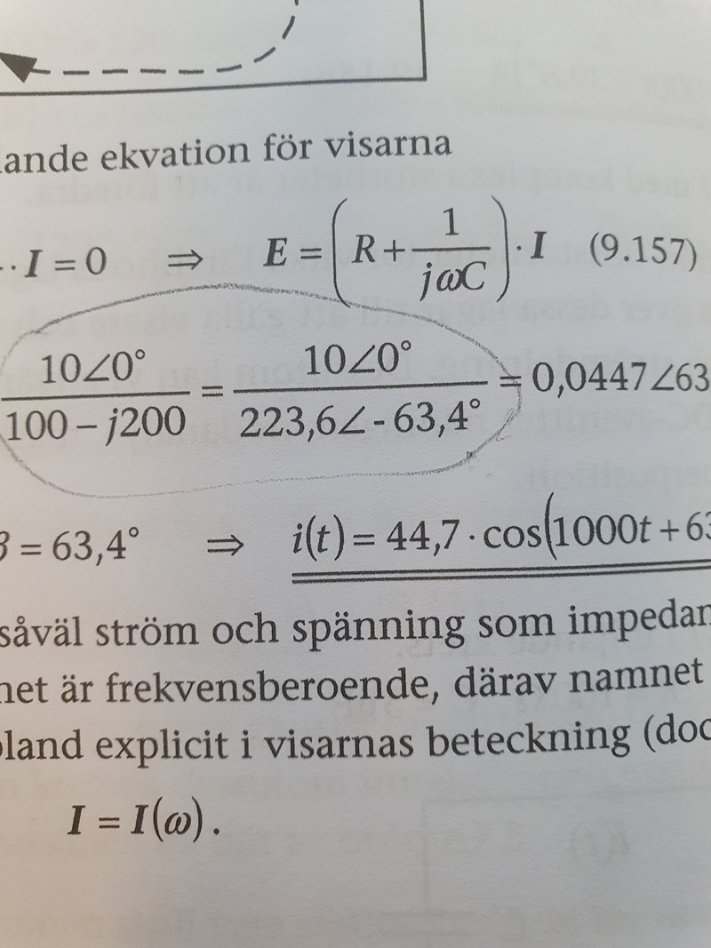 Nej, det komplexa talet 100-j200 har beloppet 1002+2002223,6\sqrt{100^2+200^2}\approx223,6 och argumentet v=arctan(-200100)-63,4°v=\arctan(\frac{-200}{100})\approx -63,4^{\circ}.