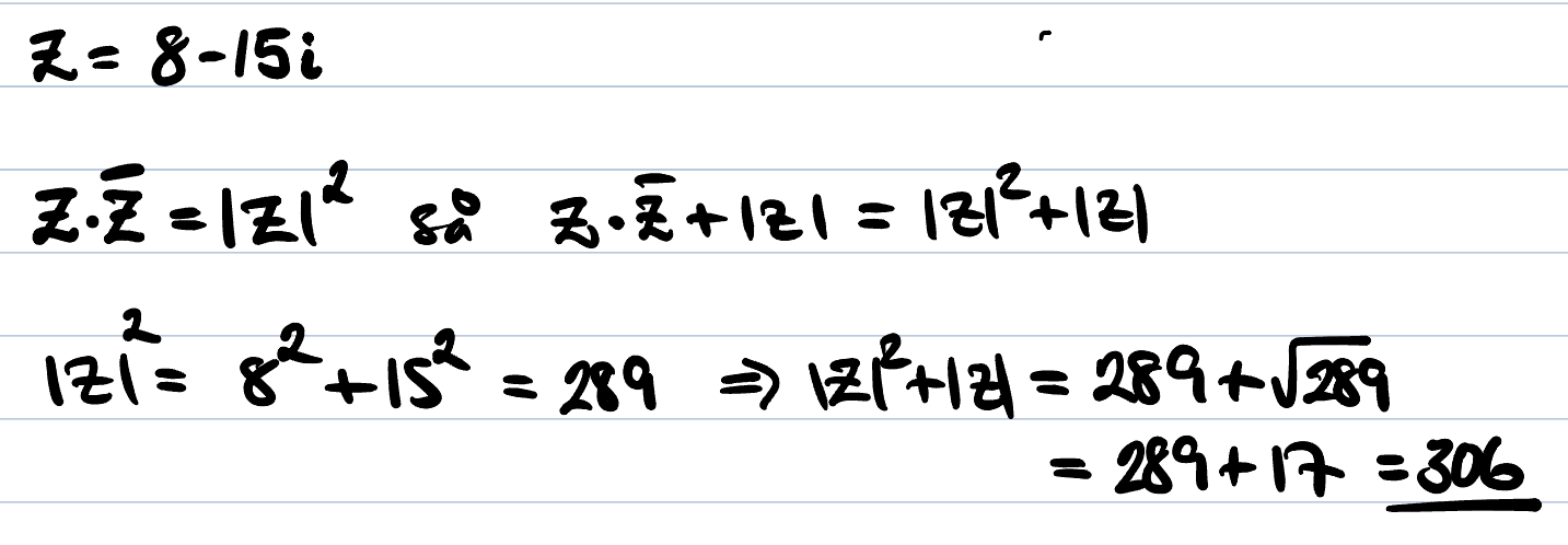 sedan är 8*8 = 64 och -15i*-15i = -225. Då har vi Roten ur -161 gällande absoluta avståndet där.. Vilket är fel. -15i * -15i kanske blir +225 av någon anledning och svaret är 17.