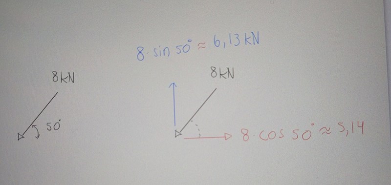Du kan tänka att resultanten är summan av de två komposanterna. Om vi adderar de två komposanterna ska vi få resultantens storlek och riktning. Får du det med bilden du ritat nu?