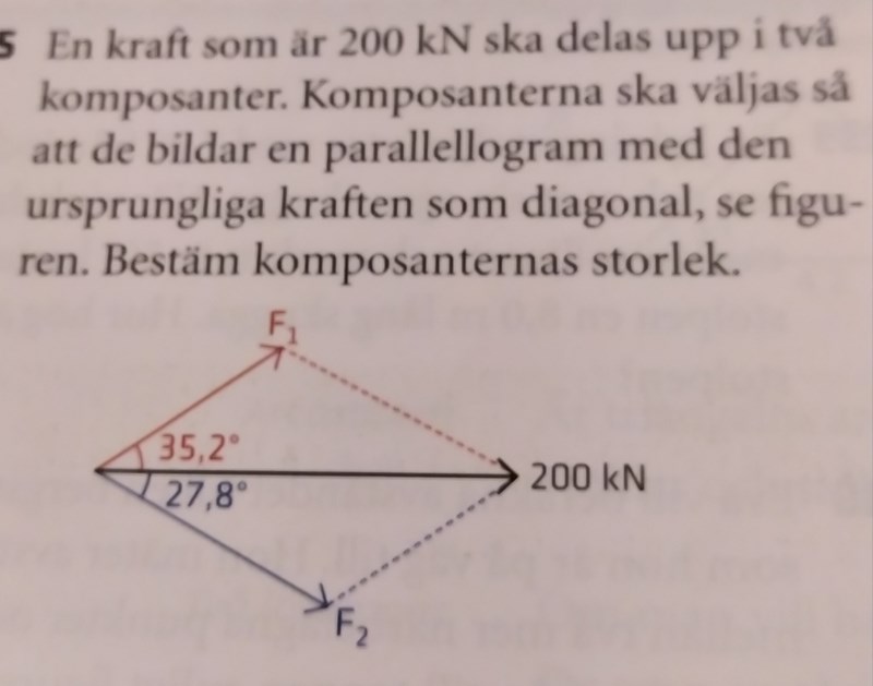 Använd sedan cosinus och sinus satsen. 2 okända, 2 ekvationer.