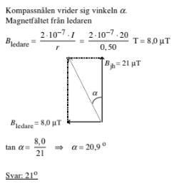 Om jordens magnetfält är vinkelrätt mot ledarens magnetfält så är horisontalkomposanten av jordens magnetfält också vinkelrätt mot ledarens magnetfält, i horisontalplanet.