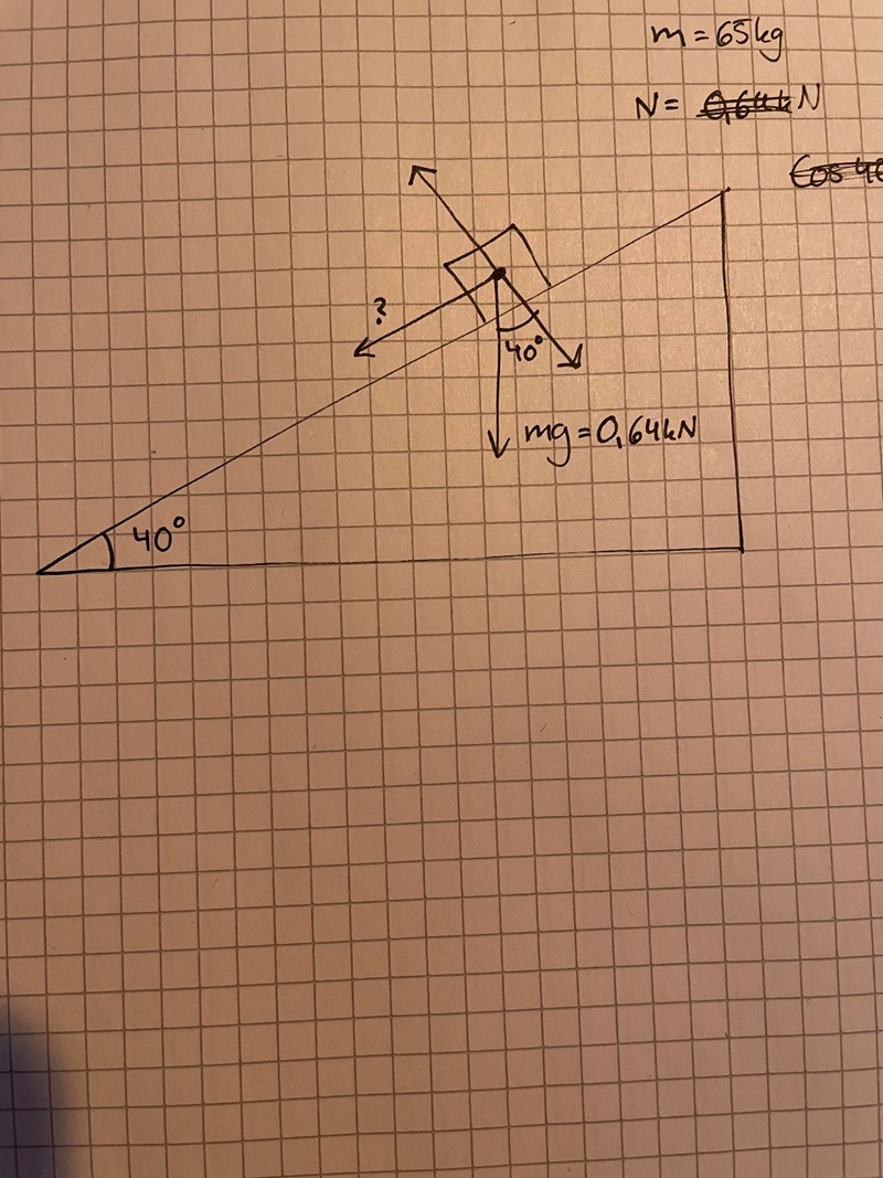 Sin(40)*mg är tyngdkraftskomposanten parallellt med planet.