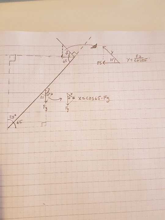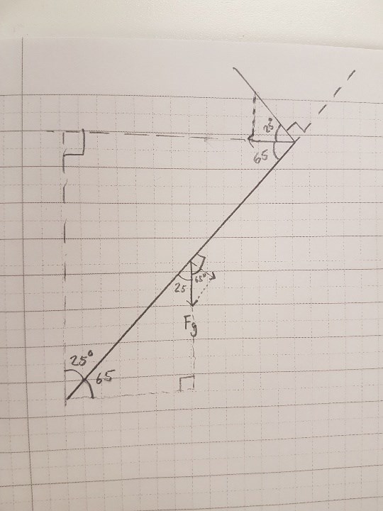 Det är altså den övre triangeln med vinkeln 25 jag menar.