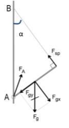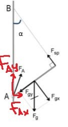 I andra fallet om y-komponenten av spänningen i linan är samma som mg, då kommer inte det inte att finnas någon kraft i y-led i punkten A. Men matematiken kan visa det.