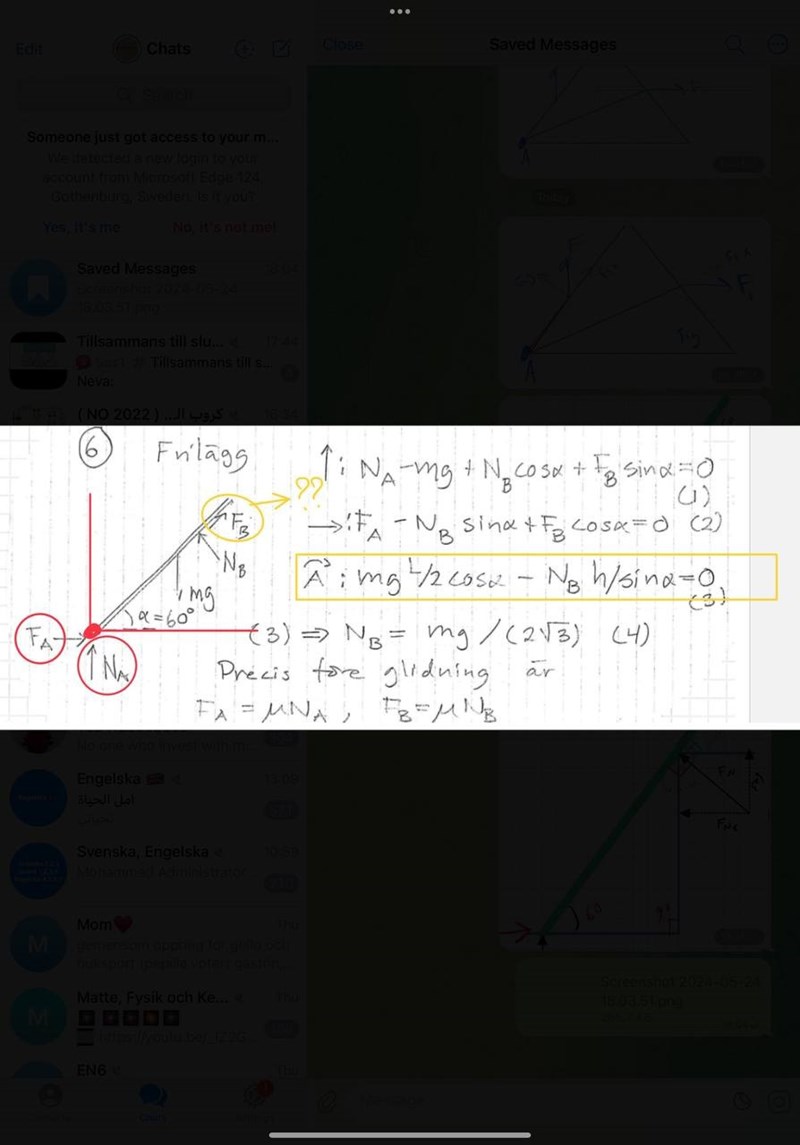 Jag undrar hur de fick att vinklen ( efter komposantuppdelningen) blev samma mellan Fb och Nb ?