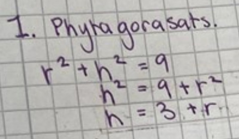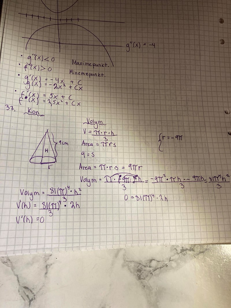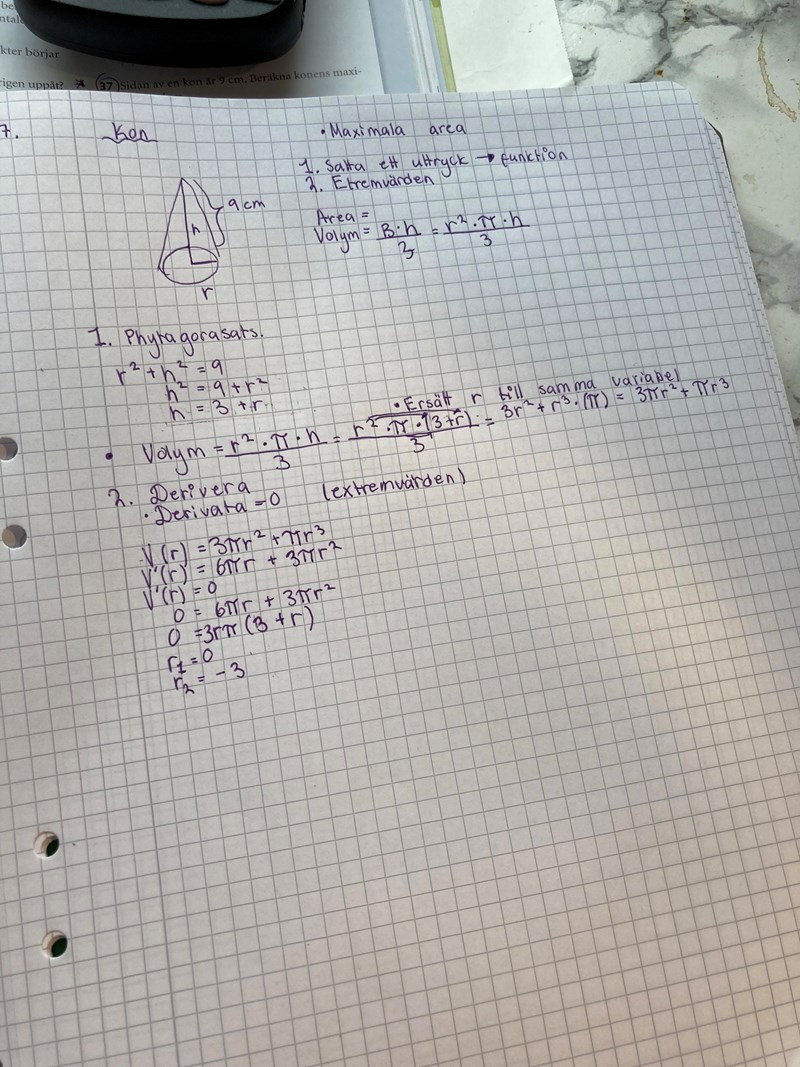 Ett fel är formeln för konens volym. Det ska vara i täljaren, inte .