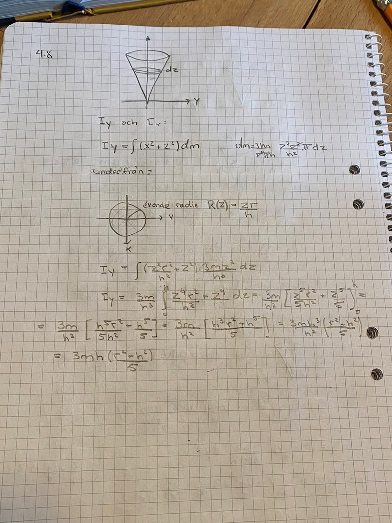 PATENTERAMERA skrev:I den formeln är det underförstått att det är en trippelintegral över konen och att dm = . Sedan kan du tex införa cylinderkoordinater eller rymdpolära koordinater.