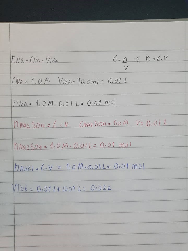 Hur många mol natriumjoner finns det i 10,0 ml 1,0 M Na2SO4? Hur många mol natriumjoner finns det i 10,0 ml 1,0 M NaCl? Hur många mol natriumjoner finns det totalt?