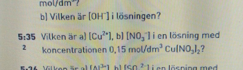 Smaragdalena skrev:För kopparjonerna gäller det att du har 0,15 mol i volymen 1,00 liter. Vilken är koncentrationen av kopparjoner?