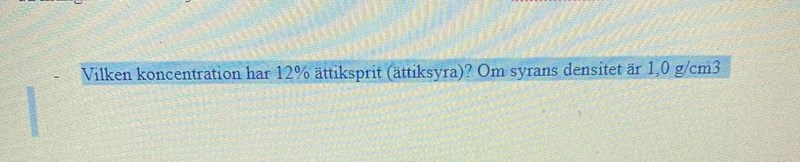 Ta uträkningarna steg för steg. Du har kommit fram till att 1 liter ättiksprit har massan 1 000 g. Hur många gram ättiksyra finns det i 1 liter ättiksprit?