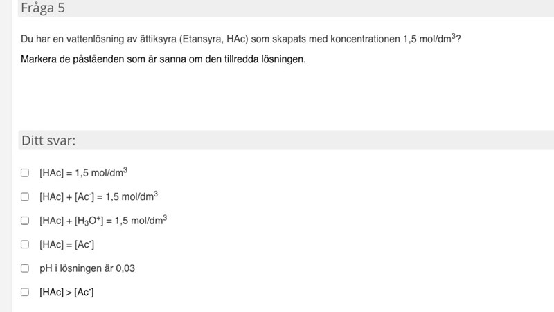 Jodå, de alternativen är rätt, men det finns et korrekt rad till. Varje gång en ättiksyramolekyl reagerar med en vattenmolekyl bildas inte bara en oxoniumjon utan även en ...