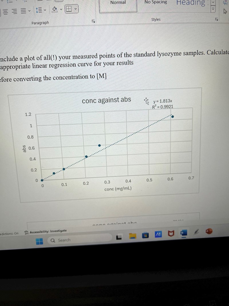 asså 1.813 har jag fått genom en kurva där absorbance på y Axel som har ingen enhet och concentration på x Axel som har g/L