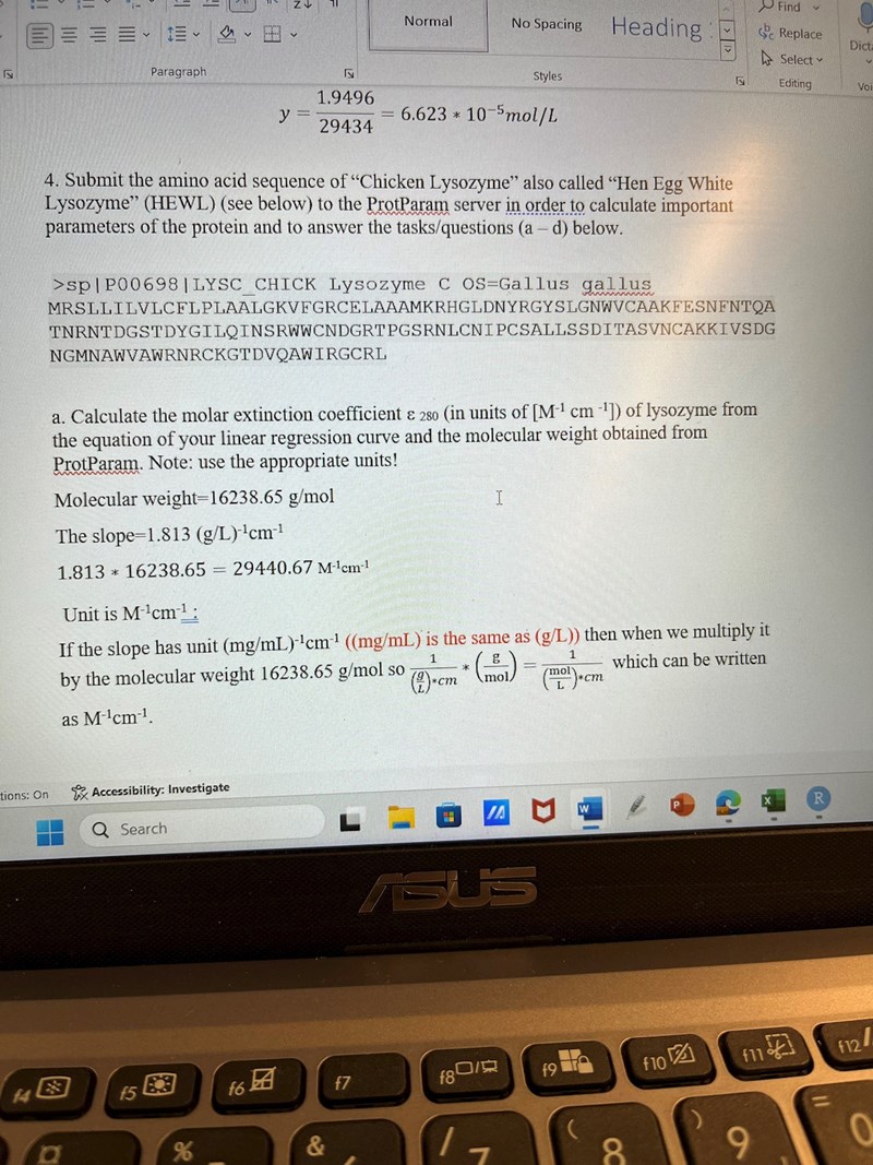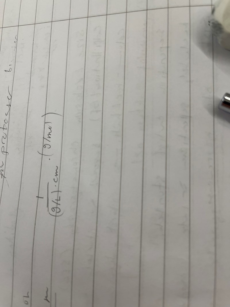 Eftersom molecular weight har g/mol då om vi delar kommer mol hamnar uppe och vi har 1.813 g/L. Så därför kommer det bli M-1cm-1