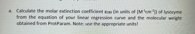 jag har en fråga hur ska jag räkna ut epsilon från en kurva där vi ska använda molecular weight? Jag har gjort en kurva som har ekvationen y=1.813x då är koncentrationen i mg/ml som är i x axel och absorbance på y Axel men nm