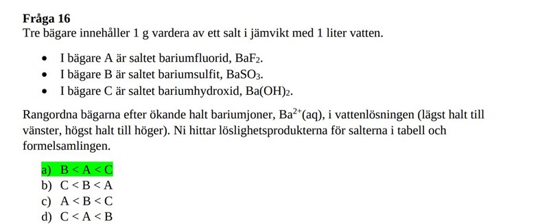 Jag förstår inte om jag ska söka på löslighetsprodukten i nån tabell eller om jag ska beräkna det.
